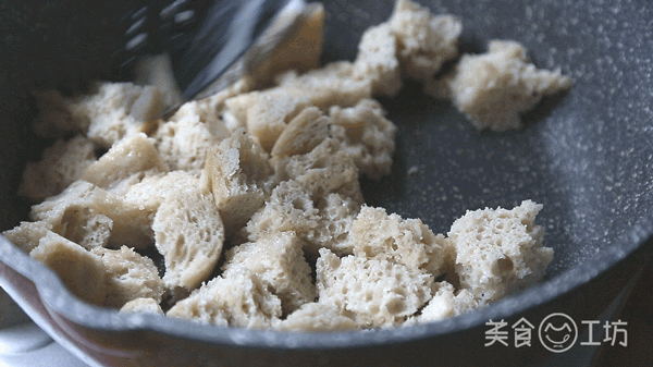 1、烤麸掰成小块,热油锅至油温约170℃,放入烤麸以中火油炸至烤麸表面呈金黄酥脆状,捞出沥油备用。