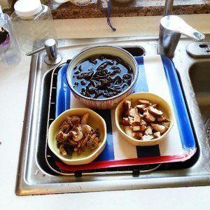 1.将干香菇、干木耳、干黄花菜用清水泡发3小时左右,干香菇的水不要倒掉。