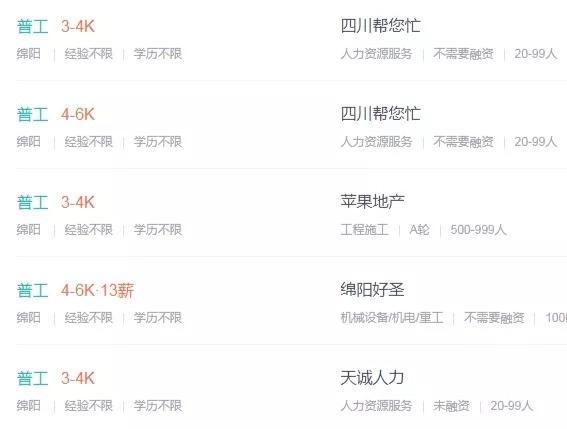 三线城市进厂也是不少人的选择,在绵阳普工薪资一般在3000-5000之间,这是普通工人工资,如果能当上组长、车间主任等职位,薪资可能达到4000-8000;