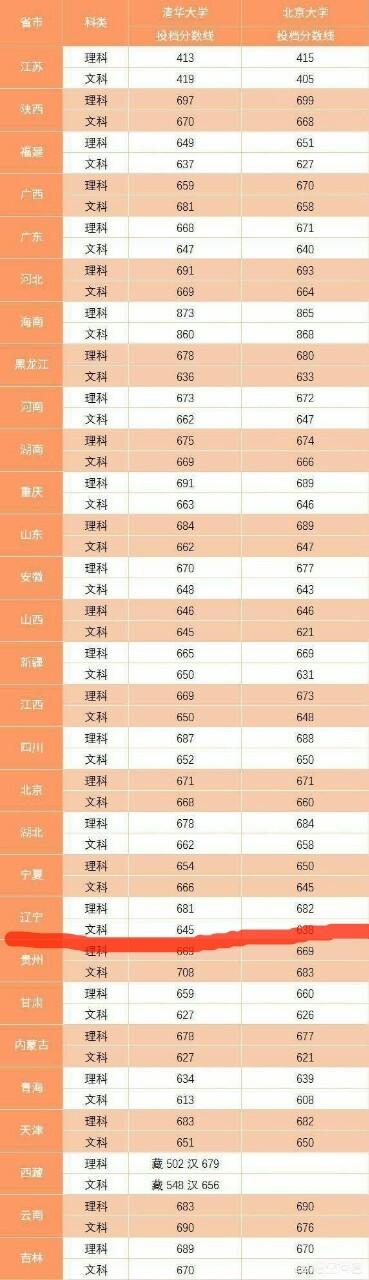 再看看2017年清华北大的投档线才知道什么叫绝望。清华理科分数线681分、文科645分,北大理科分数线682、文科638分。就是这么高的分数。