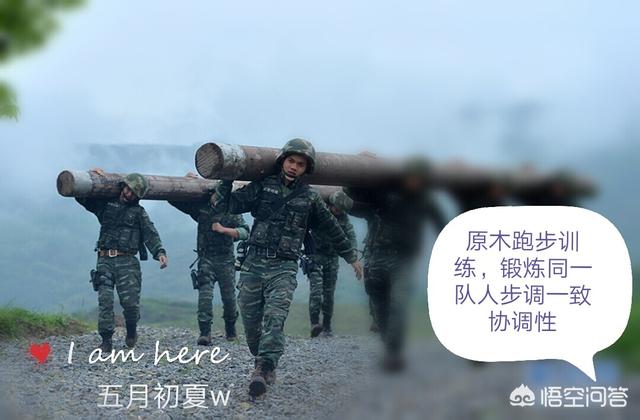 6-800斤原木4-5个人扛起800米操场跑10-20圈。