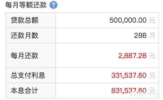 你的月供应该是在2887元,利息总额是33万,总的来说你的利息也优惠,月供也不算太多。