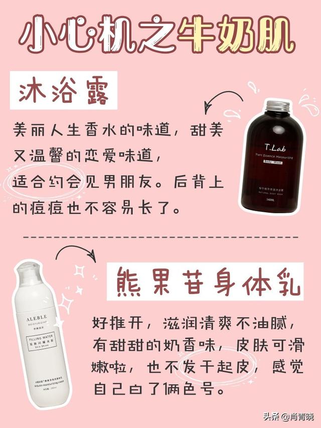身体乳:粉红色的胖子颜值高,少女感满满,甜蜜香味清雅好闻,还hin持久,不仅滋润皮肤还可以自带体香。