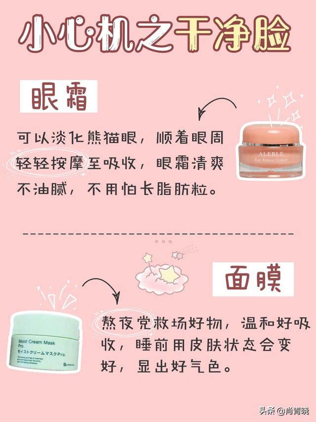 眼霜:可以淡化熊猫眼,顺着眼周轻轻按摩至吸收,眼霜清爽不油腻,不用怕长脂肪粒。