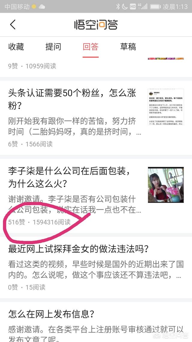 大家看下图,新手期内悟空官方邀请我答题“李子柒是什么公司在包装,她为何这么火?”因为我个人很喜欢看李子柒的视频,而且几乎所有她的视频都看过,也知晓她停更的事件,还有她对我的积极意义,所以我非常流畅的写了几百字回答。作为一个新手,发表过文章也答过题,但每次阅读也就几十几百,可这篇文章却以我目瞪口呆的速度蹭蹭蹭的涨。说实话,刚开始的时候还是挺兴奋的,随着时间的推移,阅读量已超百万,而且还在曾。可是我专攻领域是农村生活,是关于种菜养花的啊,到现在总共190万阅读这一篇就占了160万,其他回答有70篇哪,加起来才30多万。现在心情反而有些凉凉。