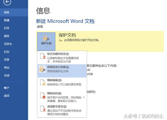 Word文档如何让加密?如何自动设置保存时间间隔? 新农商网 更新于 2023-08-08 14:53:10 全部 1010 Word文档如何让加密?如何自动设置保存时间间隔? 回复 共1条回复 我来回复 优必利 这个人很懒,什么都没有留下~ 评论 Word文档如何加密?第一步:点击“文件”——“信息”——“保护文档”——“用密码进行加密”第二步:输入两次密码,为Word文档加密保存。如何设置自动保存文档的时间?在“文件”——“选项”——“保存”一栏,可以设置文件自动保存的时间间隔,以及路径,方便你快速找到文件。 赞同 2017-09-27 10:03:28 0条评论 请 登录 或者 注册 后回复。
