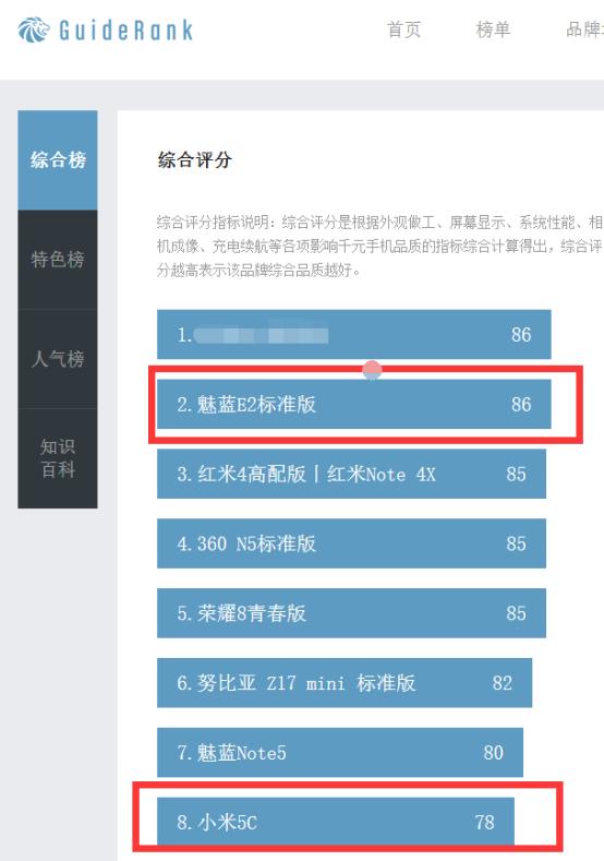(GuideRank 千元机综合评分数据排名)