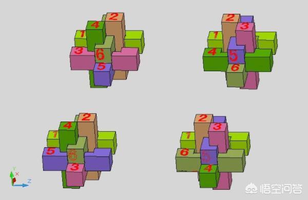 这样3+3也有4种不同的拼法。 于是此6柱组就有8种不同的拼法拼合为锁。