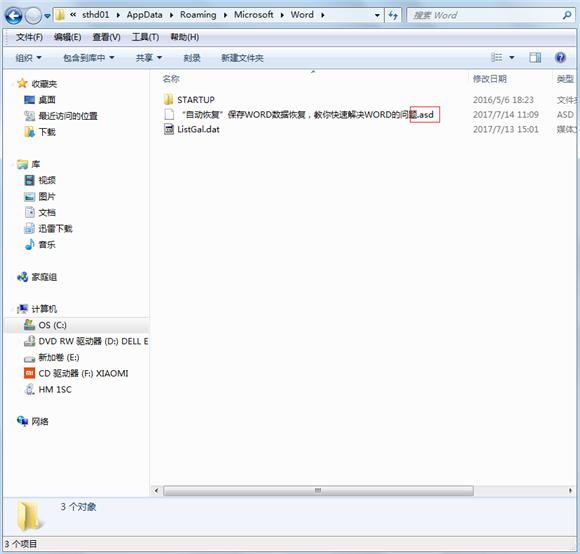 还是在“保存”的选项卡中,在右侧是不是可以看到一个“自动恢复文件位置”的选项?复制这个地址,然后在电脑上进入到地址位置,就可以看到几个后缀名为.asd的文件了,将这些复制出来。