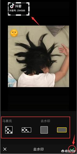 选择“马赛克”或“去水印”模式,将白色方框拖至水印水印处,按住方框边缘调整到合适的大小,点击右下角的“√”。