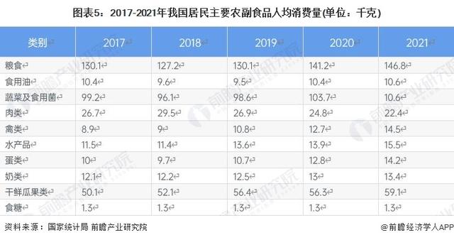 “民以食为天”,人均消费量逐年递增