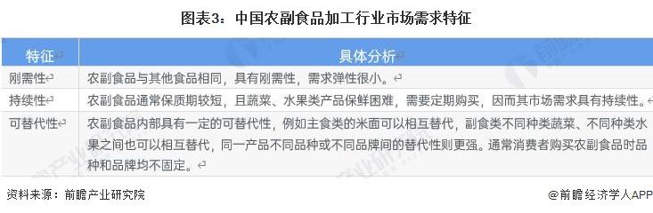 中国居民丰富的膳食结构为农副食品加工行业带来大量需求,相比其他行业,农副食品加工行业主要具有刚需性、持续性和可替代性三个需求特征。