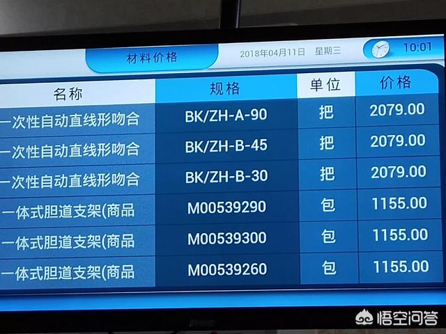 我给大家看一下,我在医院无意间拍到的,医疗器械价格表