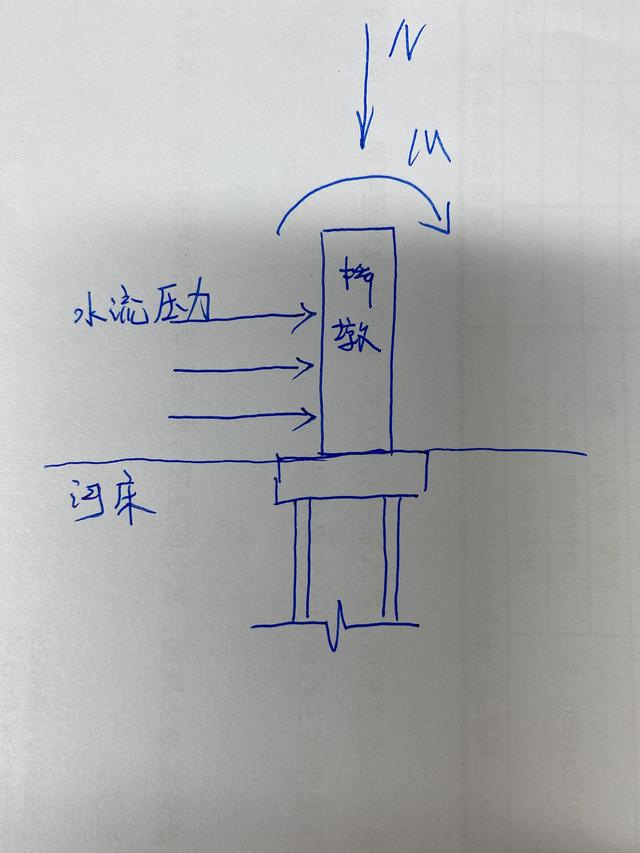首先说桥墩,桥墩在受水流压力下,会对桥墩产生倾覆弯矩M,桥墩成为压弯构件,当水流压力过大会使得桥墩为大偏心构件,用火车增加桥墩轴向压力N,会使桥墩抗倾覆稳定性增加。再说主梁,主梁与桥墩用支座连接,活动支座的地方靠摩察力提供一点水平抗力,通过火车增加重量,提高摩察力来抵抗水流压力对主梁的水平力,使之保持稳定。