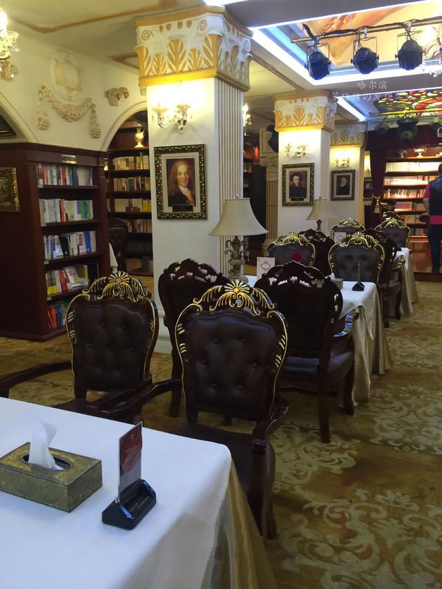 我当时去的时候,二楼区域相对封闭一些,只针对少数人群开放。在这里不光可以安静的看书,饿了还可以直接在这里用餐,虽然我还没有吃过这里的西餐是什么味道,但是也值得期待一下。周末很多新人举办婚礼的场所居然搬到了这里,我想这可能也是一辈子很难忘的浪漫之约吧!