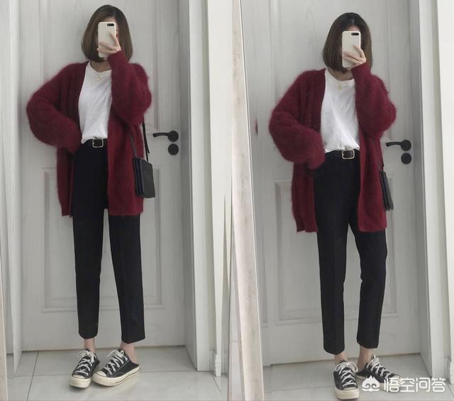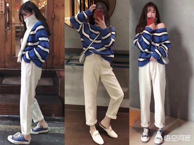 毛衣搭配长裤,这是非常随性又时尚的穿法,尤其对于小个子女生来说,宽松的毛衣搭配高腰裤,是非常有利于显高的,而且这种基础款搭配也非常容易选择外套,长款的风衣或者大衣都OK,是可以从秋天一直穿到冬天的搭配,时尚又实用。