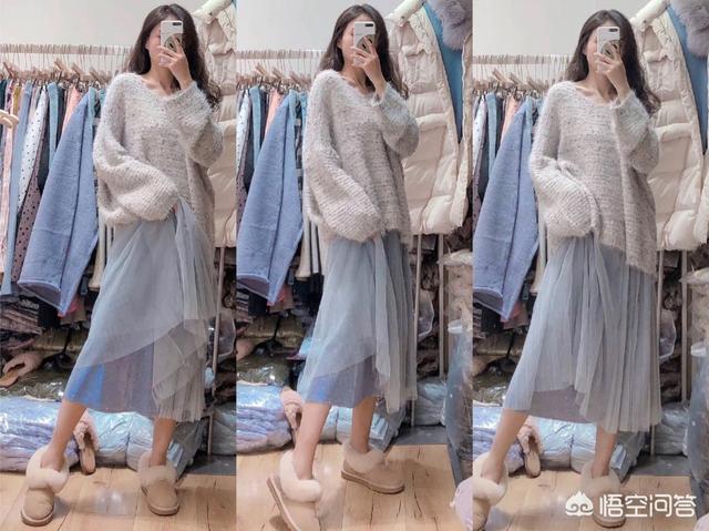 宽松的粗针毛衣搭配网纱裙,时尚温柔又显女人味,南方的妹子还能这么穿一个月呢!