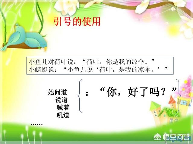 当直接引用说话人说的话时,一年级小朋友一定不要忘了将说话人和所说的话用“冒号”隔开,并用“双引号”将所说的话引起来。如下图所示: