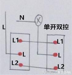 下面来介绍单开双控到四开双控。下图是单开双控二个开关接线