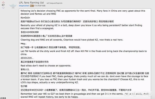 他们不出意料的选择了FNC。这时候网络喷子以及FNC粉丝坐不住了,RNG明显就是害怕KZ,选择让“韩国杀手”FW对阵KZ,以求自己能有更大的几率获得决赛门票。