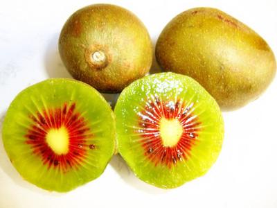 红心猕猴桃具有丰富的营养价值,常食用鲜果对人体有保健、美容、排毒、抗癌功效。被誉为“水果之王”、“维C之冠”。在日本称“美容果、聪明果”。珍稀品种---红心猕猴桃红阳猕猴桃皮光无毛,果肉金黄、果心鲜红美丽。口感酸甜清爽、香气浓,具有甜瓜、草莓、柑橘的混合风味和香气,鲜果中有人体必需的17种氨基酸和维C、B、E和钾、钙、镁、磷等矿物质。红心猕猴桃最优秀的特征之一是维C含量十分丰富,为155-420mg/100g,是苹果的20-80倍。每天吃1-2个红心猕猴桃即能满足人体对维C和微量元素的需要。尤其口感优于国内外选育的任何猕猴桃品种,猕猴桃不再是“酸果”,有“红色软黄金”之称。