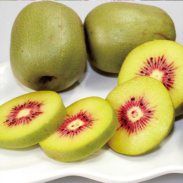 红心猕猴桃果肉细嫩、香气浓郁、口感香甜清爽、酸度极低,有“神奇美味果之称”,其营养丰富,富含维生素及P、K、Ca、Mg、Fe、Cu等多种矿物质和18种氨基酸。