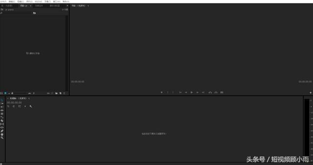这就是打开后的界面了,最上面有文件、编辑、剪辑、序列、标记、字幕、窗口、帮助,这里面还有很多的小功能,在这里小雨就不一一介绍了。