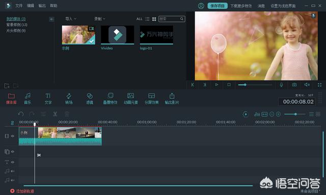 1.1 导入视频素材到媒体库,将素材拖放到第一个视频轨道。