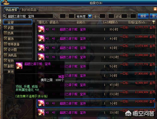 Part 3 首饰附魔,超越之诺尔妮(升级版18全属强)或其他20属强附魔,1400万一个,计4200万;