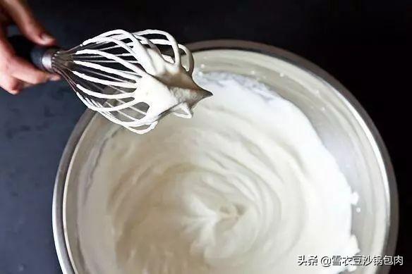 当提起打蛋头后,蛋糊流下的非常缓慢,而且落下的蛋糊也能再表面留下不消失的痕迹时,就说明已经打发好了,但别忘了最后要再用低速搅打约2分钟,整理一下气泡。
