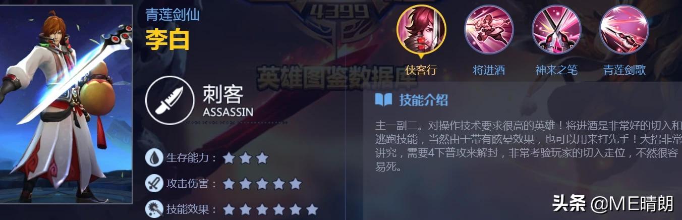 李白----目前王者峡谷出场率超高的人气英雄,定位于刺客
