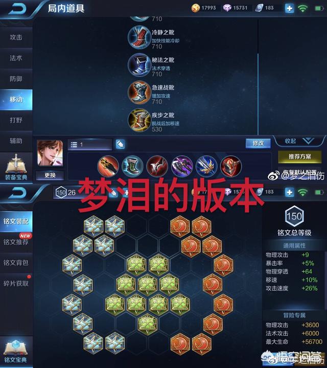 李白可以用这套系统推荐的铭文,也可以用百穿加移速的,感觉任何游戏移速肯定是最重要的,不然干嘛出门都鞋子。