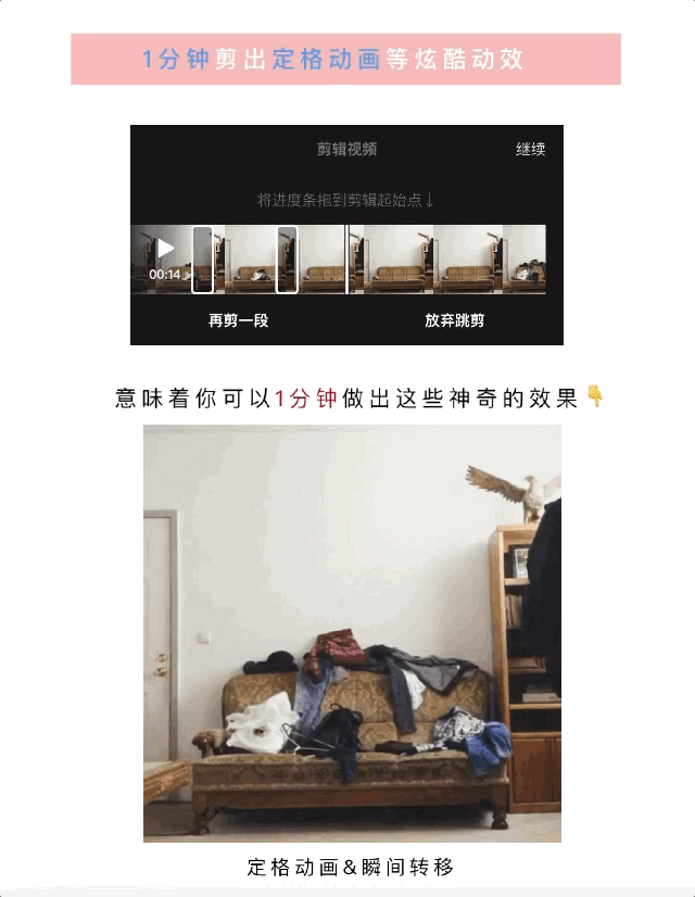 4倍放慢或加速你的视频,玩出延时摄影或者定格动画效果。(电脑版支持100倍内无极变速)