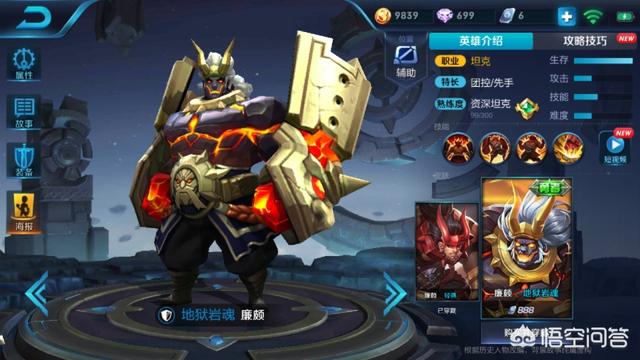 地狱岩魂,相当霸气的名字,可是这黑炭一般的夹杂着火光的瞳孔着实不如它的名字霸气。两只岩浆手臂上的盾牌就像是动画效果一般,毫无地狱之阴森气息。这倒也就算了,可是廉颇明明是一位元老级的英雄了啊,两年多才出了一个皮肤?连个288的都不给糊弄着弄上个吗?