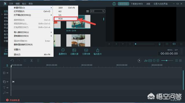 再比如威力导演,新建项目,也是可以选视频比例的。我们常用的比例就是横屏16:9,或者竖屏9:16.