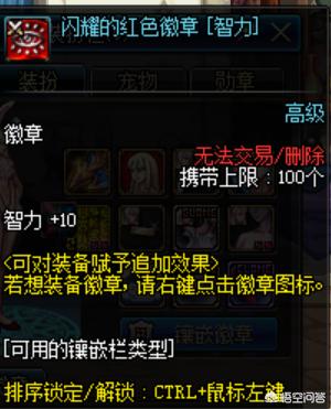 1:徽章分普通,高级,稀有,粉装传说,普通的在NPC卡尼娜那里就可以购买,而高级的一般刷图就会爆,如果说要更好的就要稀有,粉装和传说啊