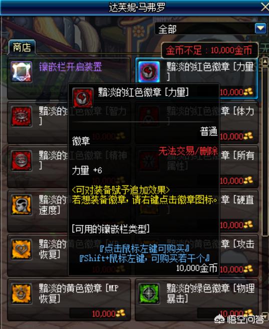 这里购买的徽章价格便宜,但是属性很低,一般只用于过渡。而且购买的徽章是无法合成的