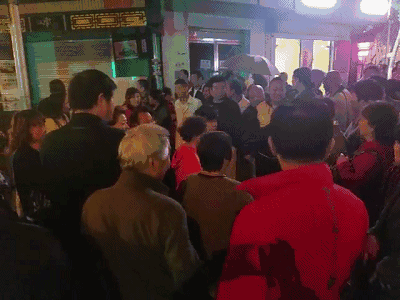 第二天,视频中的蛋糕店被“愤怒”的市民围堵了,其中有顾客,也有看热闹的,群情激愤的控诉蛋糕店的“恶行”。真实场景如下: