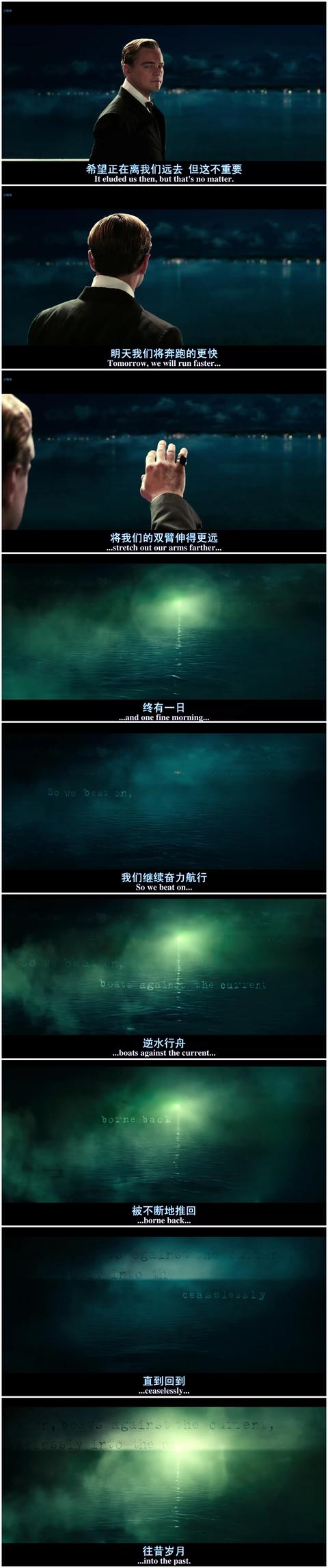 其实想读原版书不太推荐英文名著,因为里面会用到很多“古英语”,一些语意即便是母语者也很难理解,类似于我们读上世纪的白话文。当然也有很多例外,名著里面比较推荐的作者是菲茨杰拉德(FitzGerald,George Francis),他的书虽然算是“经典名著”,但更像是现代兼具文笔与内涵的精致小说,行文遣词非常讲究,特点是大段大段的氛围景色描写,读起来非常有美感,比如他非常出名的《了不起的盖茨比》和《夜色温柔》,可以让你隔着书页感受到上个世纪纽约纸醉金迷的气息,但对非母语者的词汇量和阅读能力有一定的要求。如果读不懂可以先看电影再阅读。以下是全书中非常经典的一句话,可以注意看英语字幕,有些意思翻译并没有传达出来: