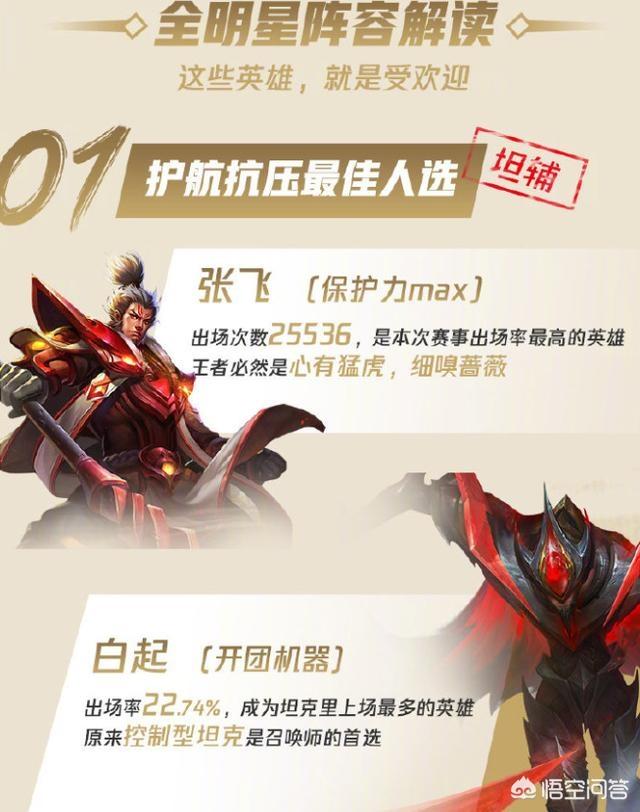 白起是坦克中出场率最高的英雄,那么张飞应该就算是辅助位置的了,强大的开团能力,无解的控制,白起在重制之后已经成功被玩家接纳,并列入了极高的优先级当中。