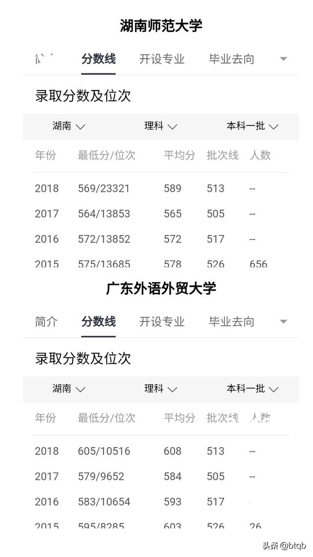 提供一个分数线,湖南师大分数线离广外还有一定差距