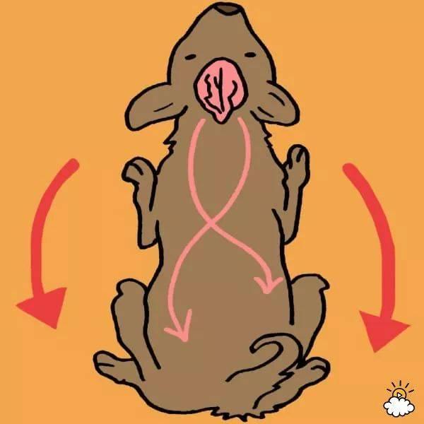 此时多半是狗狗躺在地上懒懒地摆动尾巴,很随意很惬意,只有半截尾巴在动,这时狗狗心情是很平静的,没有波动,很享受躺着的滋味。