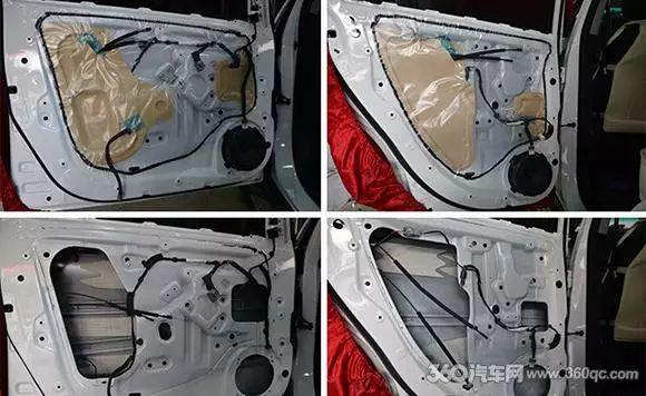 拆除塑料薄膜,发现门板内层只有少量的止振材料,起不了任何作用