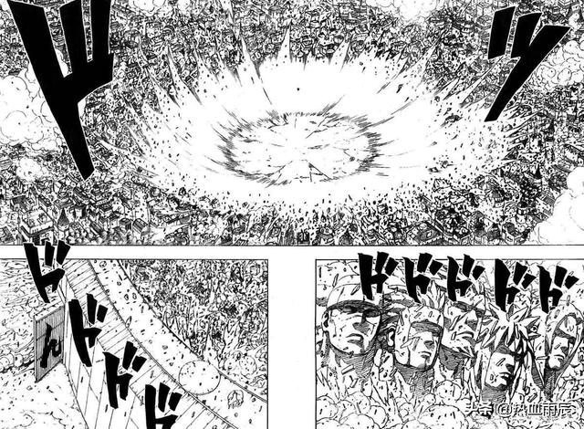 而在火影结尾部分,特别是忍界大战阶段直到鸣人佐助终结谷对决,敌我双方的忍术都是通过这种形式展现的,而这种展现方式就让大家吐槽为“核弹忍者”。
