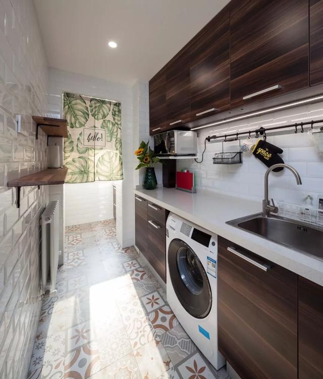 原因:现在很多户型中厨房是赠送的有阳台的。完全可以把这个阳台打造成生活阳台,用来洗衣服,使空间利用率最大化。