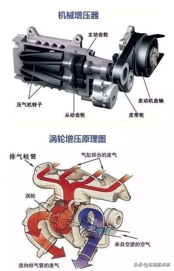 众所周知,现在很多车型为了提高发动机工作效率以及燃油经济性发动机都装有涡轮增压系统,主要作用是提高进入发动机气体的压缩比,其增压器主流的形式分两种一种是废气涡轮,一种是机械增压。还有一种电子涡轮这种在此不做赘述。