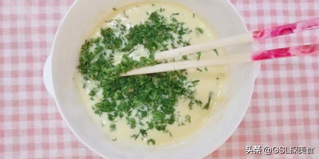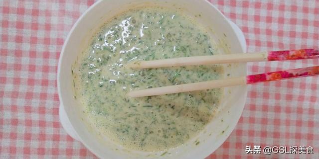 第二步,准备适量的面粉,加入大约两克食盐,再加入鸡蛋,搅拌均匀,接着加入五香粉和葱段,再加入一些清水,搅拌均匀。把切好的扫帚菜倒入搅拌,这时就会形成面糊。