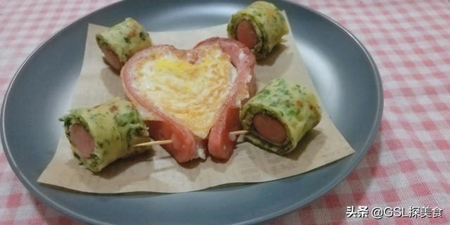 第五步,也可以煎制火腿,将火腿包在荠菜早餐饼里,这样会更有营养。或者鸡蛋和火腿在一起煎制,这样制作出来的样子好看,味道也好吃。