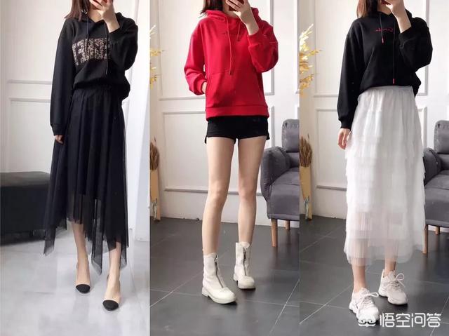 卫衣+半身裙/短裤搭配:卫衣简约,舒服,搭配半身裙看起来特别的甜美