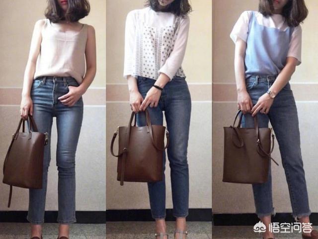 春夏季节简单的T恤,牛仔就能轻松穿出时尚感。干净的白色针织短袖搭配卡其色九分裤不仅能提升肤色,也很显气质。清爽明快的牛仔背带裙搭配经典不过时的条纹衫灵动俏皮,元气满满。